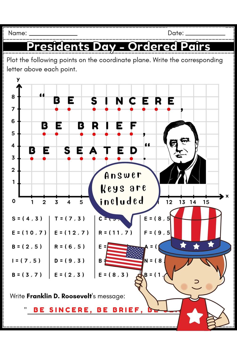 PRESIDENTS DAY MATH Activity | Coordinates Message | Abraham Lincoln , George Washington